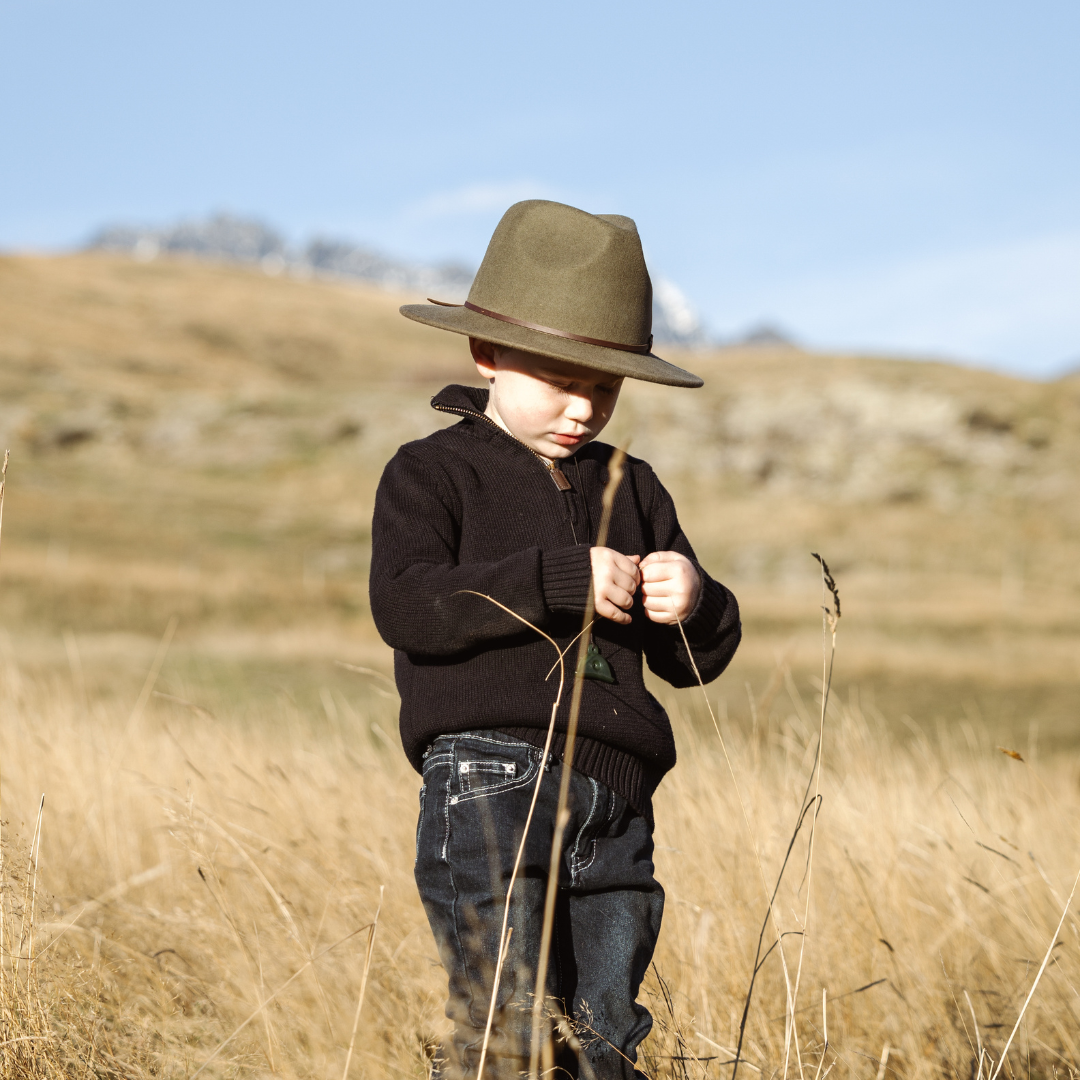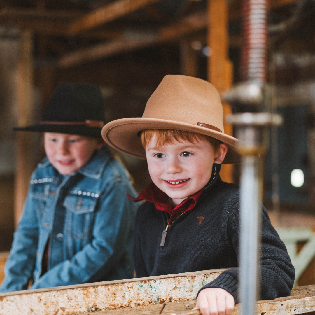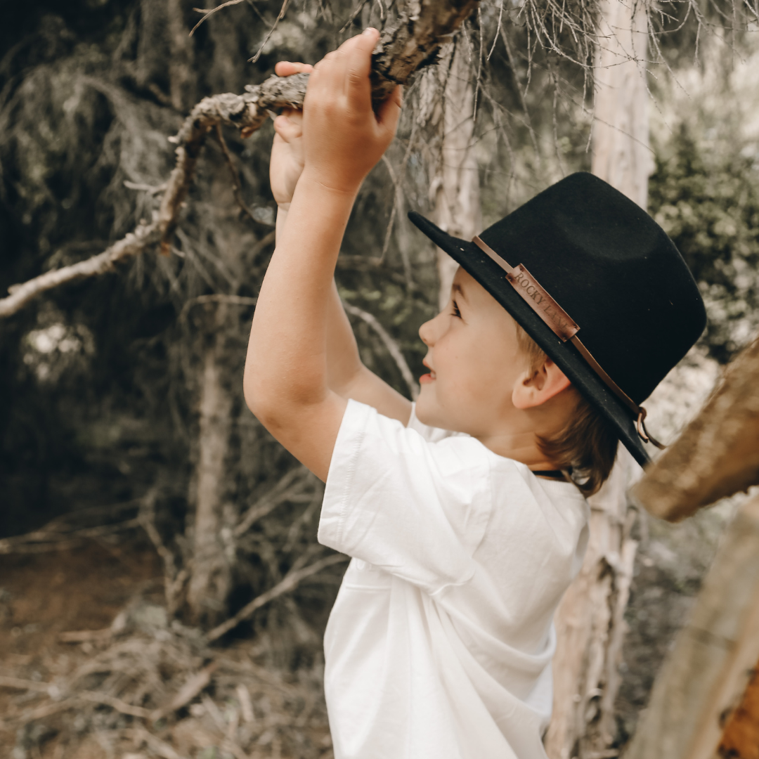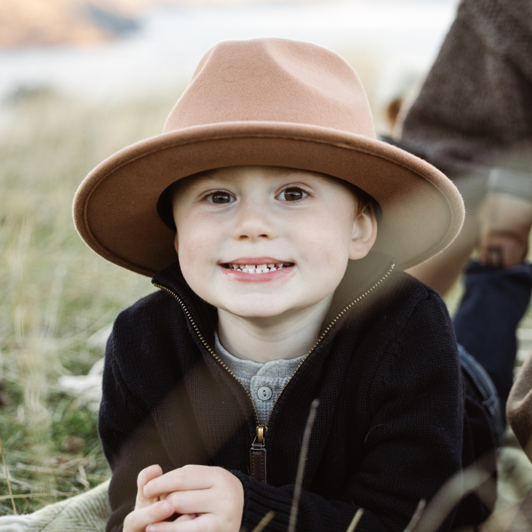 What started out as a design for kids has expanded to high-quality wool felt fedora and wide brim designs. Created in a variety of natural tones, Rocky Lane matches any little ones perfect look.